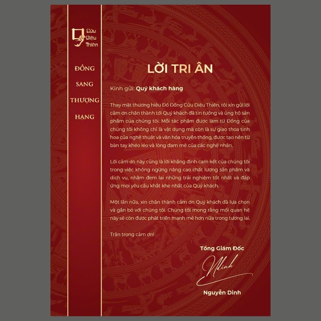 🖼 Chất liệu chất lượng: Sản phẩm được chế tác từ đồng nguyên chất, bề mặt có thể mạ vàng, dát bạc hoặc xử lý giả cổ, đảm bảo độ bền cao và vẻ đẹp trang nghiêm.